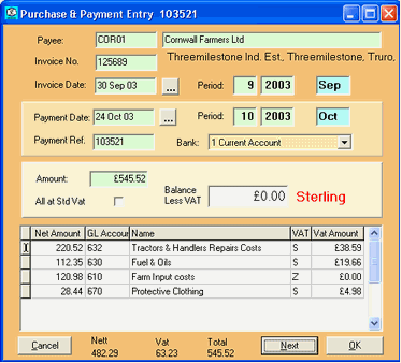 entry of single paid purchase