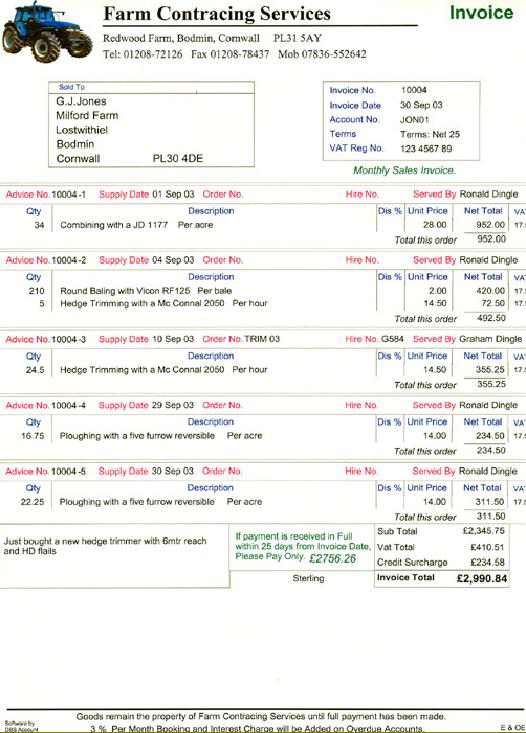 See DBS Premier for screen shot of customer entry, invoice / advice